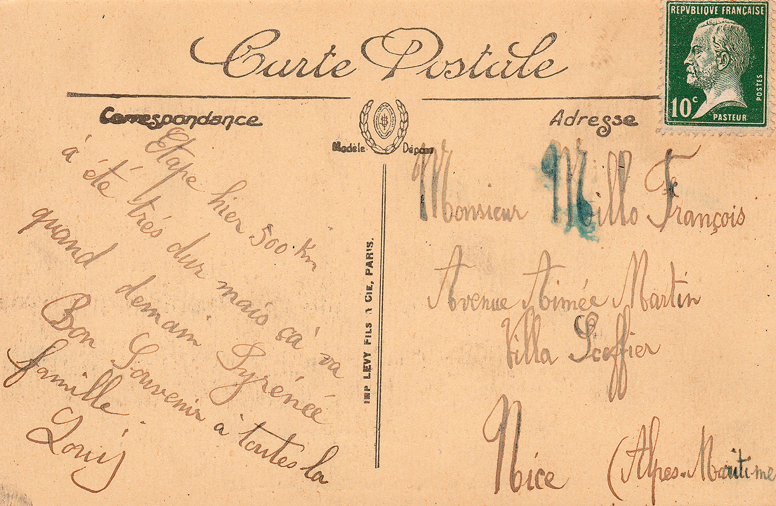 Au soir de l'étape de 482 km, Les Sables d'Olonne - Bayonne, Louis MILLO envoie une carte postale à sa famille. Le lendemain une étape de 326 km entre Bayonne et Bagnères de Luchon avec les Pyrénées au programme attend les coureurs !