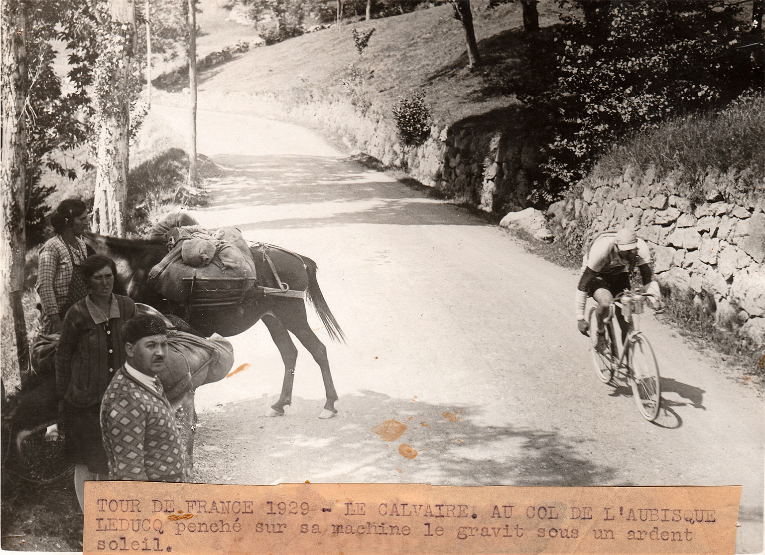 Tour de France 1929Au col de l'Aubisque, LEDUCQ penché sur sa machine termine l'ascension sous un ardent soleil
