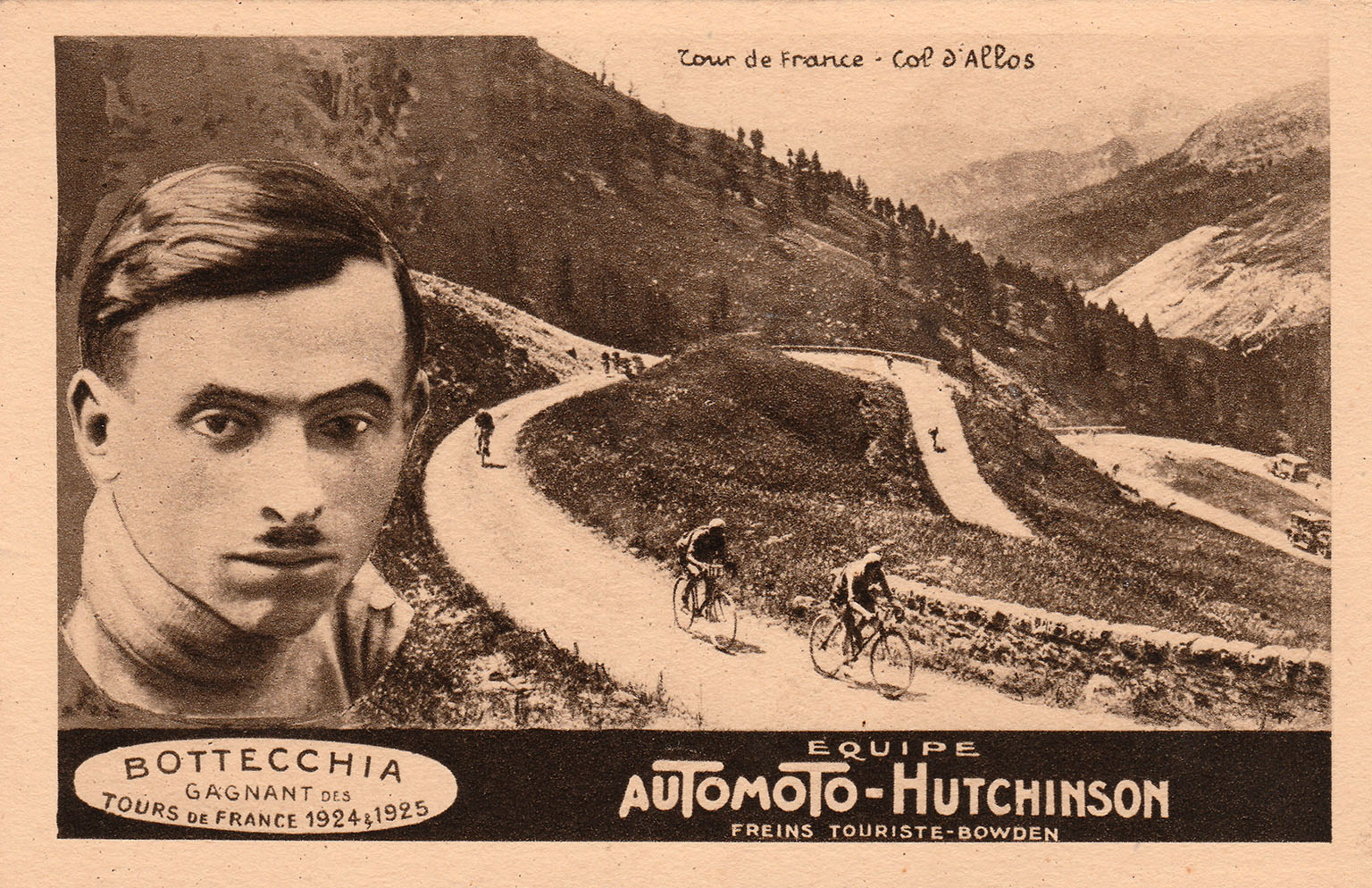 Tour de France 1925FONTAN et CARDONA dans la descente du Tourmalet. Ils se classeront premier et deuxième de l'étape.