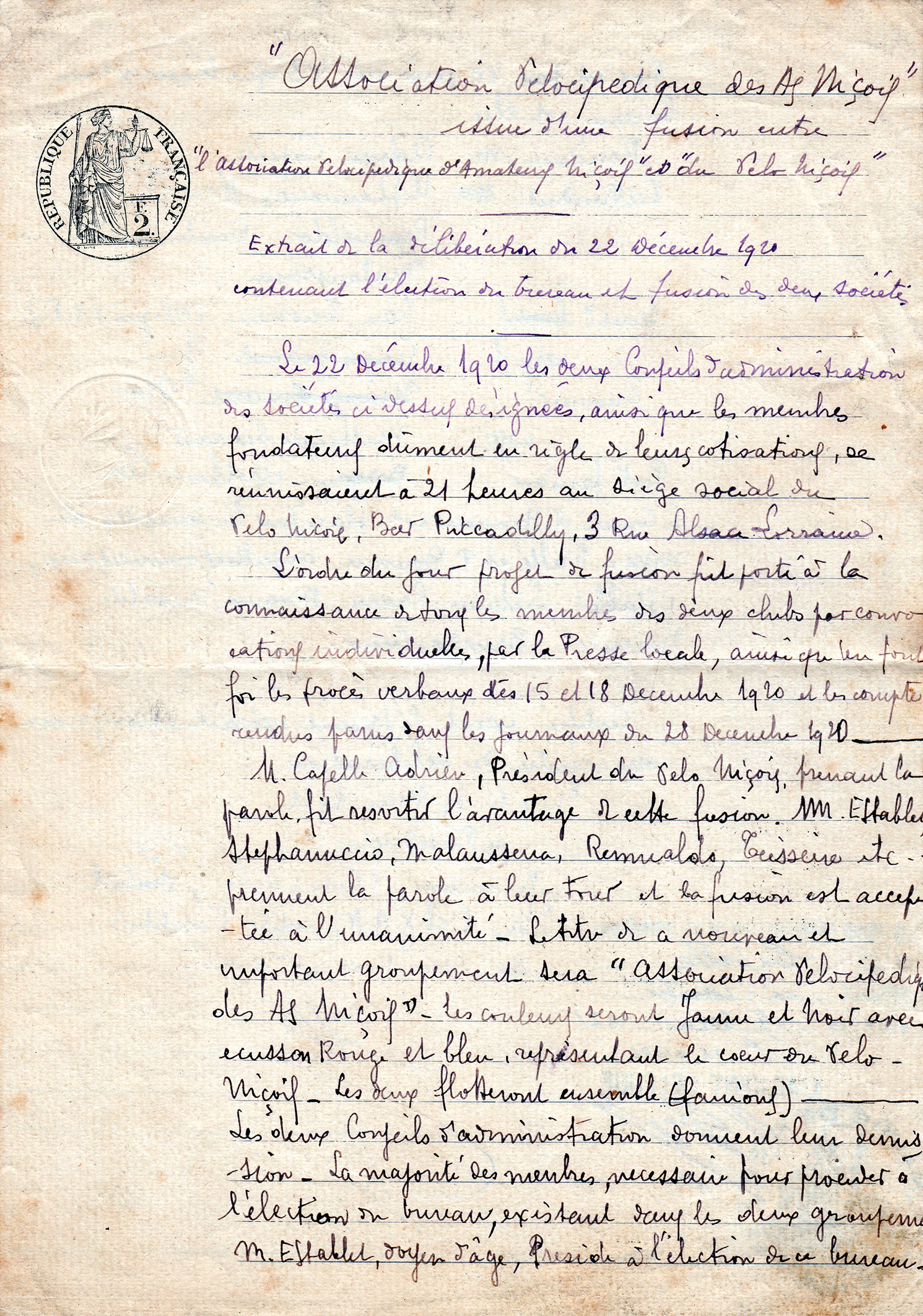 Les nouveaux statuts sont déposés en mai 1921 et la demande d'agrément à l'Union Vélocipédique de France quelques jours plus tard.