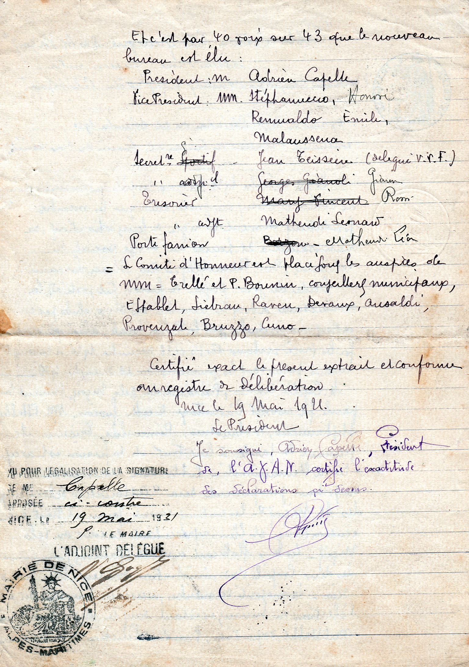 Et puis, à peine quelques mois après le dépôt des statuts, coup de théâtre : le Président Capelle (issu du « Vélo Niçois ») démissionne.