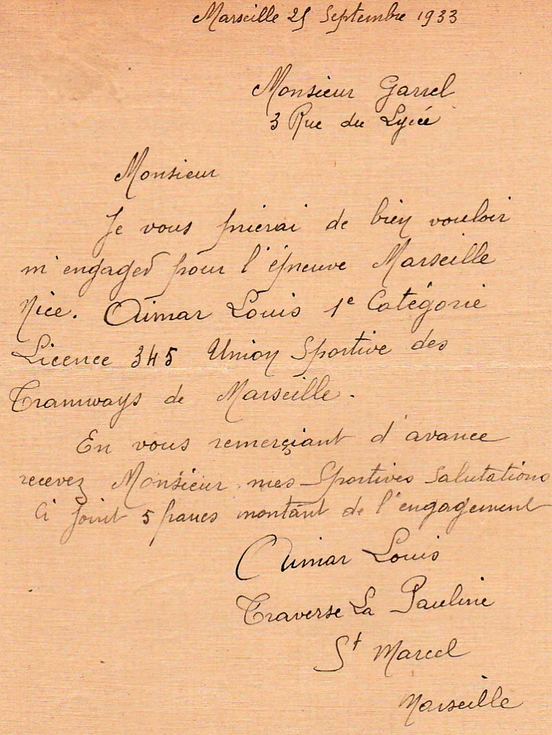 Engagement au Marseille-Nice 1933