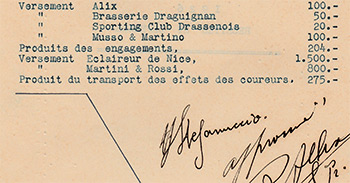Feuille de Dépenses Générales pour le Marseille-Nice 1936