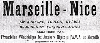 La course Marseille-Nice, à l’initiative du Comité des fêtes de Nice qui voulait offrir à ses habitants ses premières manifestations sportives, débuta en 1897.